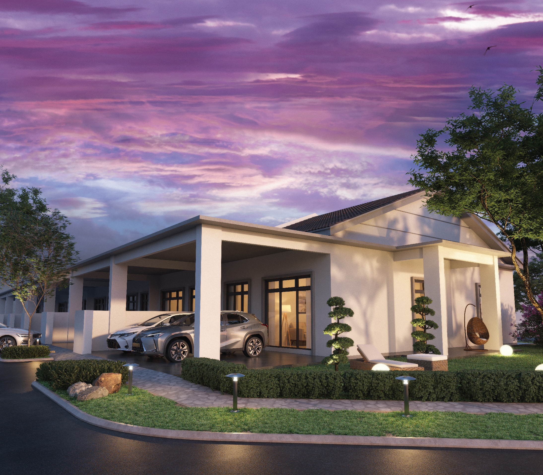 The spacious car porch comfortably accommodates two vehicles, providing convenience and protection. Inside, the sleek living room, bathed in natural light, combines elegance with comfort, perfect for relaxation or hosting guests. The master bedroom serves as a private sanctuary with an en-suite spa-like bathroom, while the other three bedrooms cater to various needs such as family, guests, or a home office.